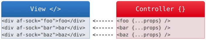 To solve that problem, Appfairy takes on an old school approach where we separate the component into a view and a controller, where we treat the view as a black-box and don’t touch it while the controller is controlling what’s going on in there; it would tell the view what to render, when to render, and how to render.